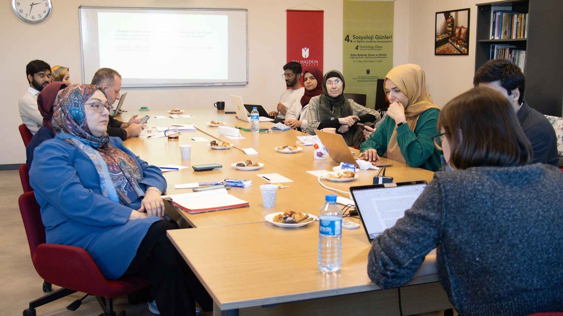 İbn Haldun Üniversitesi Sosyoloji Bölümü postdoc araştırmacımız Dr. Yasemin Özer, Brown Bag Seminerleri kapsamında 16 Aralık Salı günü, CUNY Graduate Center’da tamamladığı doktora çalışmasından yola çıkarak hazırladığı "Ordinary Care: Affective Politics of Migration and Everyday Lives of Syrian Refugees in Istanbul" [Sıradan Bakım: Göçün Duygulanımsal Siyaseti ve İstanbul’daki Suriyeli Mültecilerin Gündelik Hayatları] başlıklı kitap taslağını ve etnografik araştırma sonuçlarını sundu.