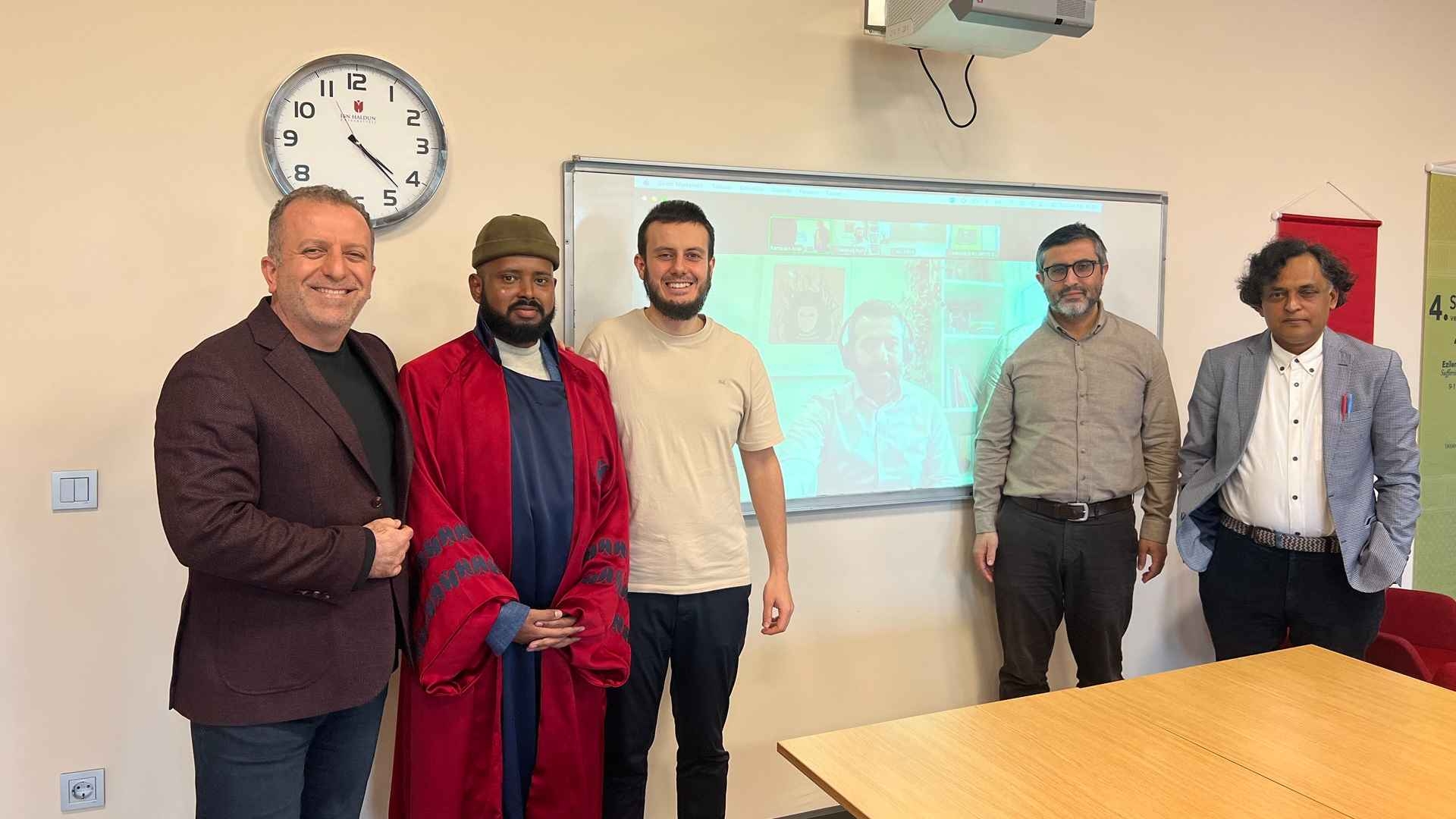 Sosyoloji Bölümü doktora adayı Abdirashid Diriye Kalmoy uzun süredir üzerinde çalıştığı "Savaşın Yankıları: Somali İç Savaşı Sonrası Siyaset, Hafıza ve Aidiyet" adlı doktora tezini, Prof. Dr. İrfan Ahmad, Doç. Dr. İdlir Lika, Dr. Ali Kaya ve Dr. Mashuq Kurt’un oluşturduğu komiteye 26 Ocak 2026 tarihinde başarıyla savunarak doktora unvanını kazandı.